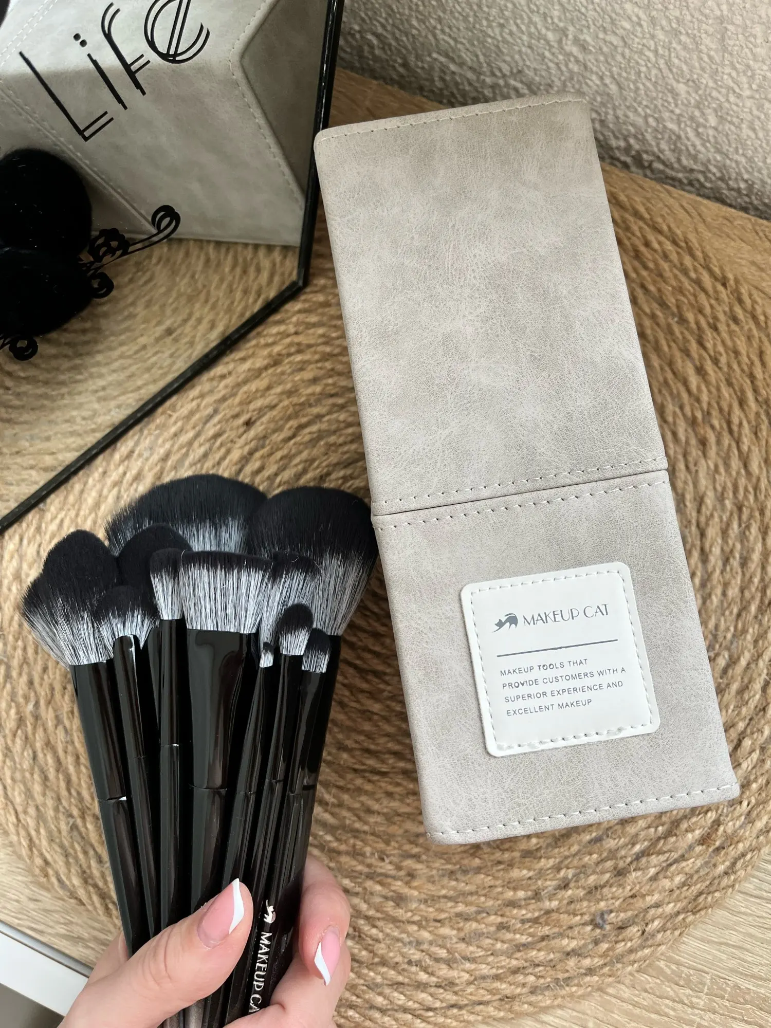 This is my third set of brushes from the wonderful brand makeup cat! Quality as always on top! Tightly stuffed pile, which does not shed, each brush has a convenient branding handle. In the set of 17 pieces, for a full make-up it’s more than enough) especially pleased with a hard cosmetic bag for them. This is both a stand and a storage case. Perfect for gift